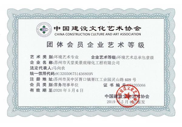 公司擁有園林古建專業承包壹級、市政工程總承包貳級、建筑施工總承包三級、環境藝術總承包壹級、環境藝術施工壹級、環境藝術設計甲級等資質。先后成為中國建設文化藝術協會環境藝術委員會常務理事單位、中國建筑與園林藝術委員會常務理事單位、蘇州市香山幫營造協會常務副會長單位、羅哲文古建文化(蘇州)基地。